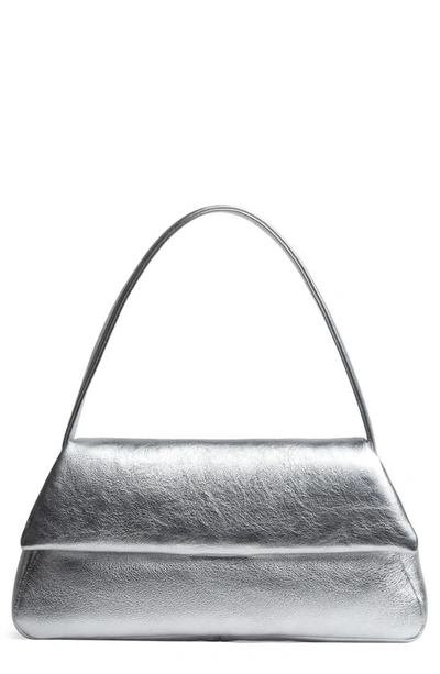 LISELLE KISS Elliot Leather Top Handle Bag In Silver Crushed
