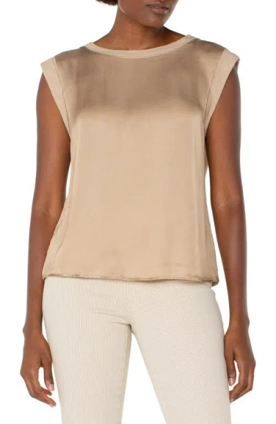 LIVERPOOL LOS ANGELES Mixed Media Sleeveless Top In Champagne