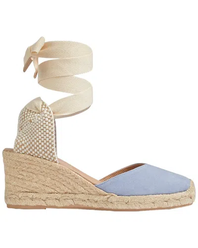 Color/Material: Pale Blue Goat Leather Fabric Tie Up Ankle Straps Lightly Padded Leather Insole Man-Made Sole 2.76In Heel Imported