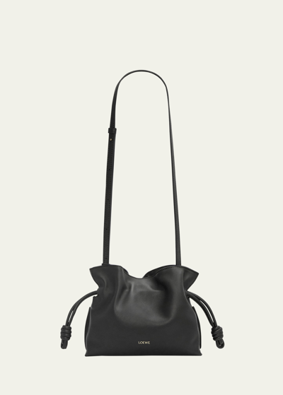 Loewe "Flamenco" clutch bag in leather Adjustable, detachable shoulder strap Can be worn as a clutch or shoulder bag Open top with magnetic and drawstring closures Approx. 7"H x 9.3"W x 3.5"D Made in Spain
