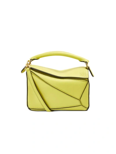 LOEWE Mini Puzzle Leather Bag In Lime Yellow