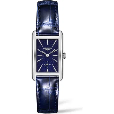 LONGINES Dolcevita Leather Strap Watch, 23mm X 37mm In Blue/silver
