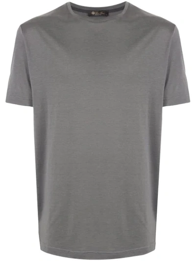 Dark steel grey silk and cotton plain crew neck T-shirt from Loro Piana. Featuring a crew neck, short sleeves and a straight hem.
