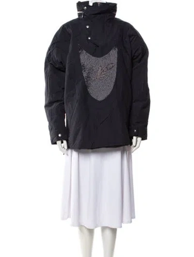 Luar Jacket Blue With Hood Beaded Accents & Stand Collar Zip Closure | Luar Jacket in Blue, Women's XS