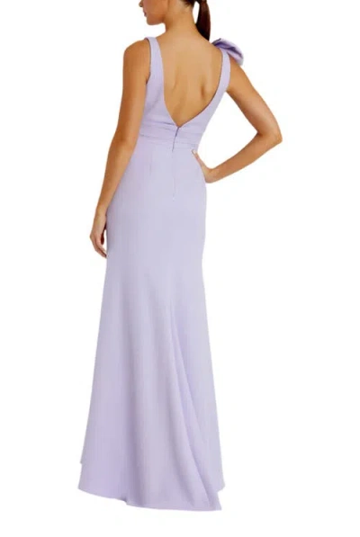 MAC DUGGAL Sleeveless V Neck Bow Detail Mermaid Gown In Lilac