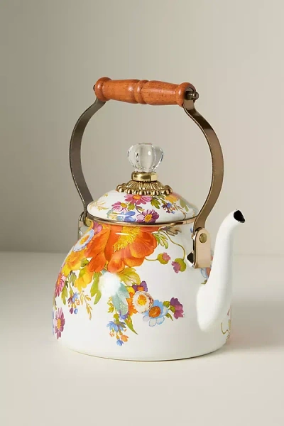 Handpainted, glazed steel underbody rimmed with bronzed stainless steel Wood handle Due to the handcrafted nature of this item, expect slight variation in the appearance of each unique piece Not for use on induction cooktops Hand wash Not microwave safe Imported 2 Qt. Tea Kettle by MacKenzie-Childs, Size: Largearge at Anthropologie