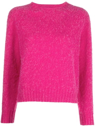 Fuchsia pink wool KENNEDI wool crew-neck jumper from MACKINTOSH featuring ribbed trim, crew neck and long sleeves.