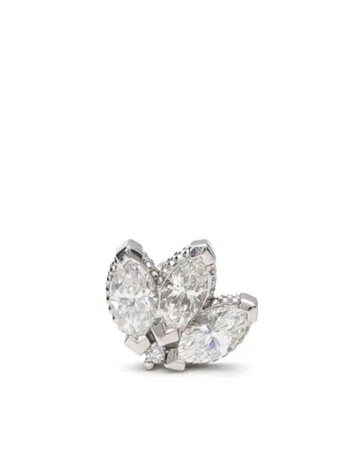 18kt white gold polished finish claw/prong setting marquise cut diamonds post-back fastening for pierced ears This is a single earring. Normal everyday use and external agents may reduce the lustre of gemstones and gold surfaces. To maintain, use specific, non-abrasive products specially meant for cleaning jewellery.