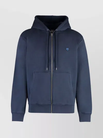 MAISON KITSUNÉ Zip-up Hoodie Featuring Fox Patch In Blue