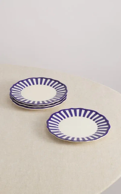 MAISON MADISON HOME Riviera 9'' Side Plate Set Of 4 In Blue/stripes