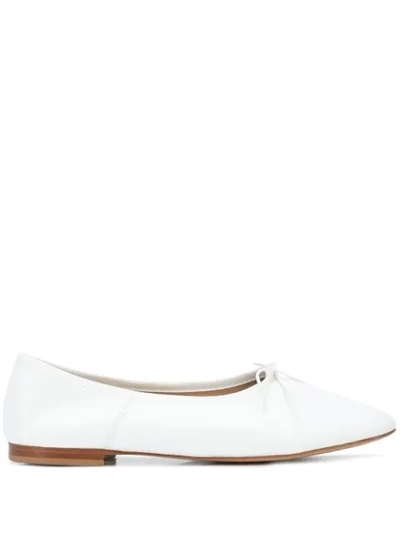 !!!Description---Smooth lamb leather is crafted into the perfect ballerina flat. The Dream Ballerina is topped off with a knotted bow and low stacked heel for everyday wear. If you have questions regarding monogramming your item, or would like to inquire about different monogramming color and placement options, please contact us atcustomization@mansurgavriel.com.All monogrammed items are final sale. !!!Details---Heel Height: 0.40 in / 10 mm Composition: Outer: LambskinSole: CowhideMade in Italy !!!Size & Fit---We suggest ordering afullsize up from your normal size.!!!Care---Our Italian lambskin is an ultra-smooth, buttery leather with a polished finishing. Lambskin is recognized for both its soft texture and longevity. This material is prone to occasional scratching if not handled with proper care. We recommend treating your piece with a leather conditioner to keep it hydrated. Avoid exposure to abrasive surfaces and always take care to store the item in its dust bag.