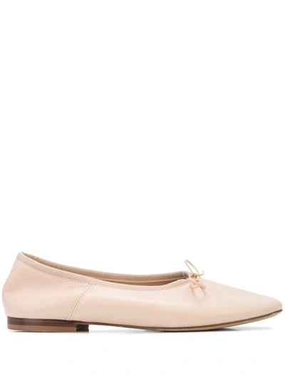 !!!Description---The high vamp, knotted bow, grosgrain trim, and low stacked heel make Mansur Gavriel's Dream Ballerina an instantly recognizable take on this timeless silhouette. Crafted from lambskin leather with a glove-like fit that molds to your foot, it combines the comfort of a slipper with the lasting quality of intentional design. Say hello or ask questions about monogramming anytime at customization@mansurgavriel.com. All monogrammed items are final sale. !!!Details---Heel Height: 0.40 in / 10 mm Composition: Outer: LambskinSole: CowhideMade in Italy !!!Sizing---Thiscolorwayrunssmall, we suggest ordering afull size up from your normal size. !!!Care---Our Italian lambskin is an ultra-smooth, buttery leather with a polished finishing. Lambskin is recognized for both its soft texture and longevity. This material is prone to occasional scratching if not handled with proper care. We recommend treating your piece with a leather conditioner to keep it hydrated. Avoid exposure to abrasive surfaces and always take care to store the item in its dust bag.