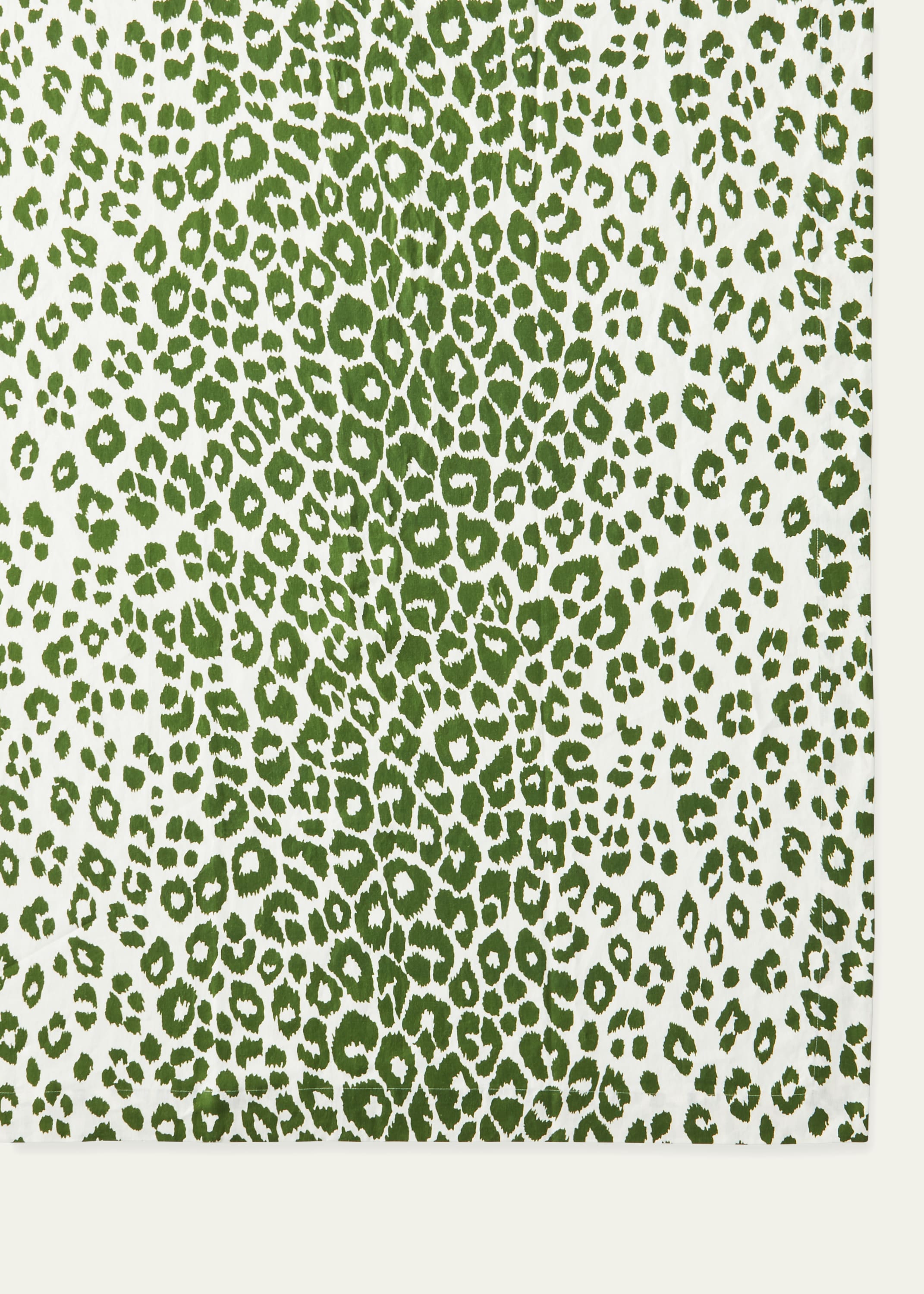 Introduced in the 1970s, Schumacher's iconic leopard is alluring, distinctive, and endlessly chic. We've printed it on our classic linen in a daring green for a table collection that's fit for casual gatherings and formal dinners alike Printed tablecloth is made of linen Approx. 70" x 126" Machine wash; do not use bleach Made in USA from imported materials