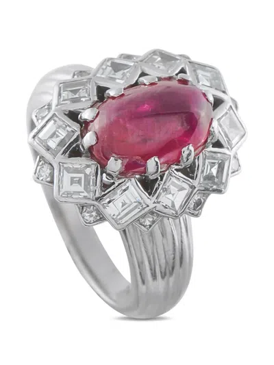 platinum polished finish prong-set oval-cut ruby totalling 2.60 carats bezel-set princess-cut diamonds prong-set round-cut diamonds totalling 1.30 carats Normal everyday use and external agents may reduce the lustre of gemstones and gold surfaces. To maintain, use specific, non-abrasive products specially meant for cleaning jewellery. Your purchase will arrive with a gift box. Condition: EXCELLENT. This previously owned item is in near-perfect condition with no signs of damage or use.