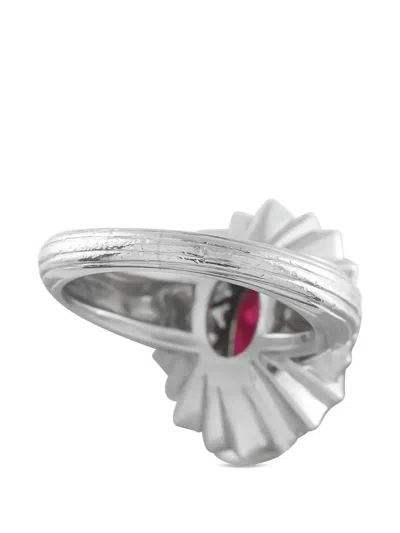 Pre-owned Diamond And Ruby Ring In Silver