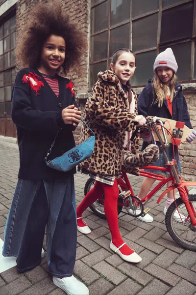 MAX & Co - Denim Hug bag - Girl - Blue. Mid blue denim Hug bag. Hobo shape with wrap-around crescent design. Monogram embroidered in a darker tone. Handle with metal snap hook. Zip closure. Contrasting inner colour lining. A MAX & Co. icon and perfect everyday accessory but with style. A mini-me model, inspired by the adult collections, perfect for matching mum and daughter looks. Measurements: 9 cm high, 16 cm wide, 10 cm deep. Handle drop: 17 cm.