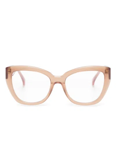 camel brown acetate cat-eye frame clear lenses logo print at the arm sculpted arms curved tips These glasses come with a protective case. All glasses from FARFETCH are sold as non-prescription frames.