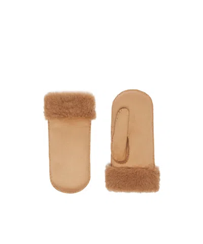 MAX MARA Sand Faux Fur Lined Mittens In Brown
