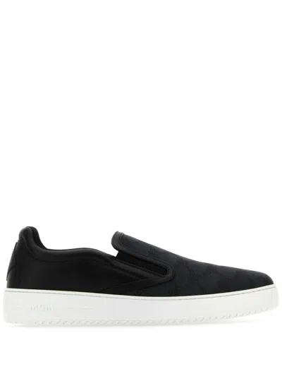 MCM Canvas And Leather Slip Ons With Contrast Sole In Black