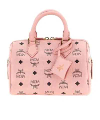 MCM Structured Top Handle Handbag With Detachable Strap In Pink