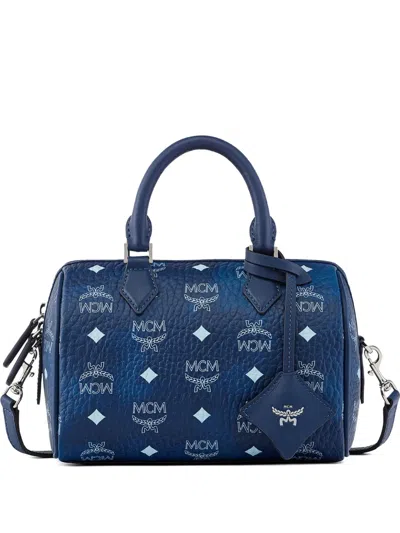 MCM Small Ella Boston Visetos Monogram Tote Bag In Blue