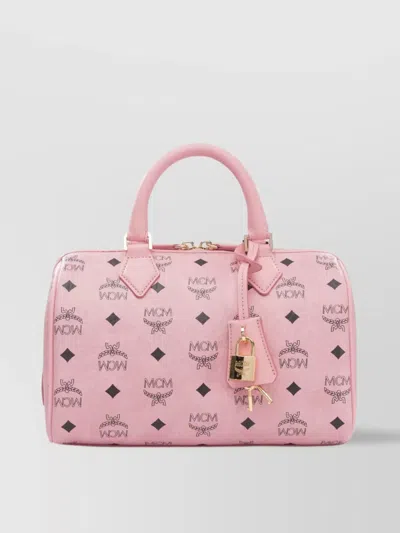 MCM "Ella" boston top handle bag in signature coated Visetos monogram canvas Rolled top handles, 3.9" drop Detachable logoembossed Bavarian diamond leather charm Detachable, adjustable crossbody strap, 36.6" to 42.9"L Can be worn as a top handle or crossbody bag Twoway zip top closure Interior, pocket Lining: Sueded microfiber Approx. 5.5"H x 8.5"W x 4.7"D Polyurethane/polyester/cotton/leather Spot clean Imported