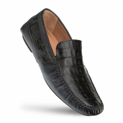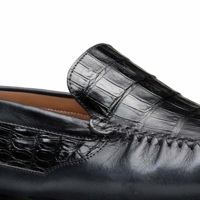 Pre-owned Dress Shoes Genuine Crocodile Leather Loafer Driving Moccasin Black