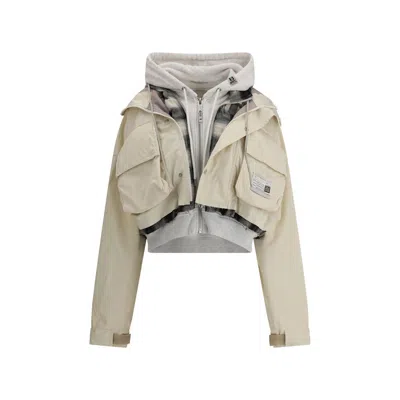 Maison miharas jacket is a garment with a bold, contemporary style. the cropped model with a layered patchwork design stands out for its experimental, layered aesthetic. equipped with a hood and front zipper and snap closure, it features two front patch pockets with flaps and a logo patch that signs the brands identity with character. Composition: 50% % Polyester, 50% % Cotton
