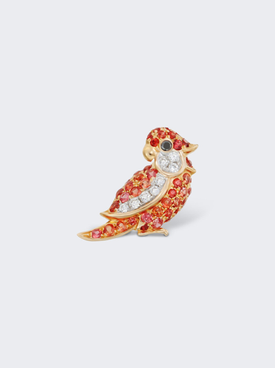 MIO HARUTAKA 18k Yellow Gold Little Bird Single Earring With Diamond And Orange Sapphire In 18k Rose Gold And White Gold