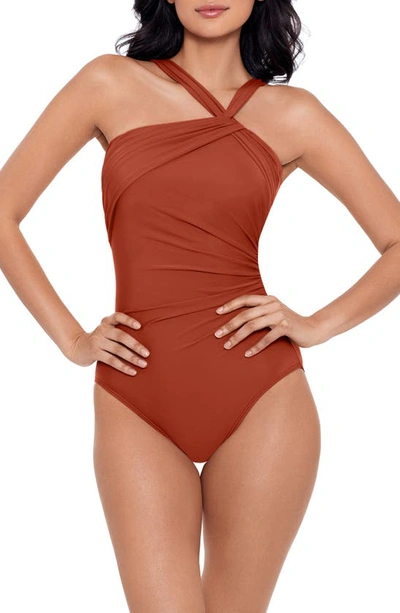 MIRACLESUIT Rock Solid Europa Asymmetric Underwire One Piece Swimsuit In Spice