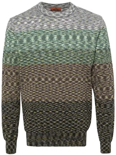 Missoni Crewneck Sweater in Green 100% cotton. Made in Italy. Hand wash. Jersey fabric. MSON-MK1. US24SN0K. About the designer: Missoni has grown from a tiny Italian workshop into a worldwide luxury brand that is still family-owned and operated. Founded in 1953 by then newlyweds Ottavio and Rosita Missoni, the first official Missoni collection wasn't presented until 1958 when the couple took their line to Milan. Since its first viewing, the line has garnered much attention and editorial praise for the use of varied colors, abstract patterns, and mix of geometric and stripe prints. The Missoni brand has grown and expanded into several lines, including a Missoni Home collection, Hotel Missoni, and a less expensive line called M Missoni that has an international distribution.