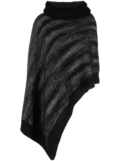 ribbed-knit roll-neck cape from MISSONI featuring black, wool, ribbed knit, roll neck and asymmetric hem. This piece fits true to size. We recommend you get your regular size. Model is 1,75m / 5ft 8in wearing size UNISize -