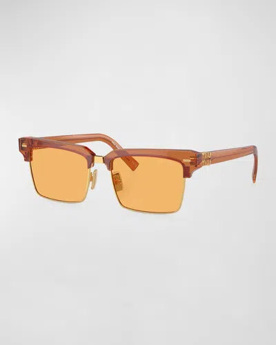 MIU MIU Logo Mixed-media Square Sunglasses In Yellow