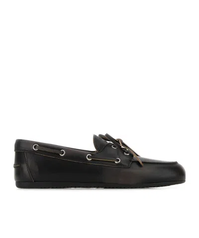 MIU MIU Leather Loafers With Lace Detail And Metal Eyelets In Black