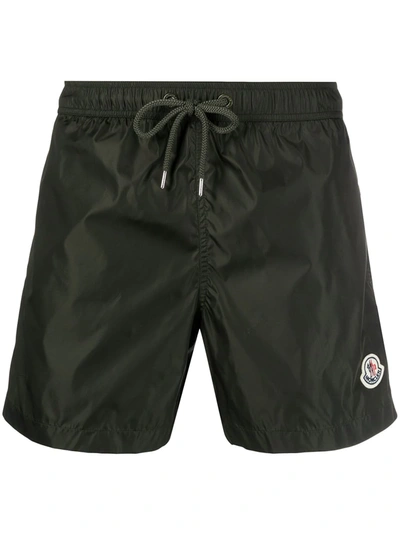 MONCLER Logo Patch Swim Shorts In Green
