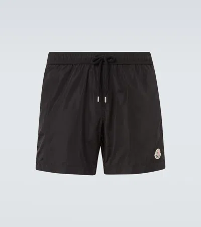 MONCLER Logo Patch Detail Elastic Waist Swim Shorts In Black