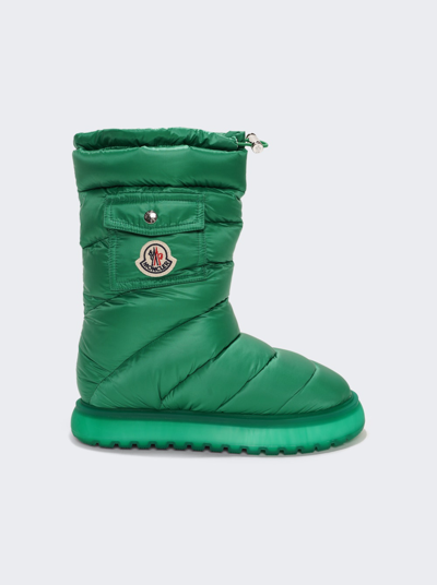 Moncler's Gaia boots flaunt a padded water-repellent upper and a snap pocket with a signature bell logo appliqué. Nylon upper Round toe Drawstring closure Elastodiene sole Made in Italy ABOUT THE BRAND Named after the beautiful Alpine town of Monestier-de-Clermont near Grenoble, France, the luxury outerwear brand debuted in 1952 with quilted sleeping bags and down jackets created to protect the town's workers from the elements. Today, Moncler's insulated, high-performance gear is supplemented with après ski styles for women, men and kids, as well as shoes and winter accessories. Women's Shoes - Cold Weather > Moncler > Saks Fifth Avenue > Barneys. Moncler. Color: Green. Size: 6.