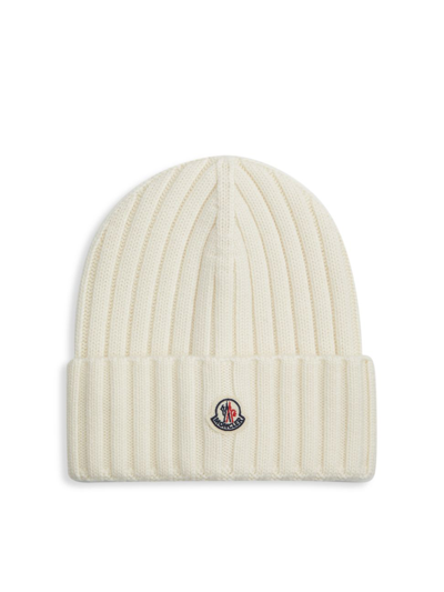 MONCLER Women's Rib-knit Logo Beanie In Ivory