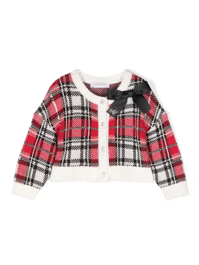 Monnalisa Checked Crew-neck Cardigan In Red