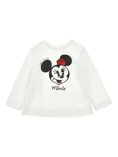 MONNALISA Ivory T-shirt For Baby Girl With Minnie In White