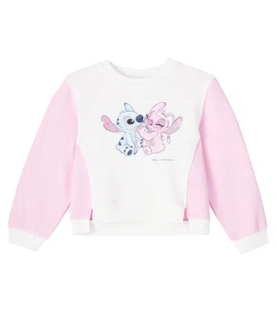 MONNALISA Kids' Stitch & Angel Sweatshirt In Pink