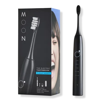 THE ELECTRIC TOOTHBRUSH. Benefits: Up to 36,000 sonic vibrations per minute for the deepest clean. 5 Smart modes for a customized brushing routine: Clean, White, Polish, Massage, Sensitive. Ultra-fine, tapered bristles for optimal reach around each tooth. 2 interchangeable brush heads included. Additional sold separately.. Easy-to-use, 2 minute guided brushing timer with 30-second intervals. Waterproof, lightweight handle. 120 Times more powerful than a manual toothbrush, to aid in stain prevention and gum health. Powerful yet gentle, ergonomic and elegant with 5 sonic cleaning modes, premium quality bristles and an industry-leading 6 week charge. Includes: 1 Waterproof electric toothbrush with ergonomic, no-slip handle. 2 Interchangeable black brush heads featuring cutting-edge, ultra-strong bristles (one white and one black) with a superfine feel. 1 Small, easy-to-use USB charging base: longer charge duration than any other electric toothbrush - lasts up to 6 weeks. 1 Sleek, on-the-go travel case for easy storage. :