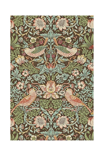Originally designed in 1879, Morris & Co.'s famed Strawberry Thief pattern cloaking this wallpaper of the same name boasts swirling botanicals and thieving thrushes in a visually opulent scene carefully gravure-printed on paper. About Morris & Co. Founded by famed British textile artist William Morris in 1861, Morris & Co. continues to reproduce his authentic, centuries-old designs that are emblematic of the Arts and Crafts movement.