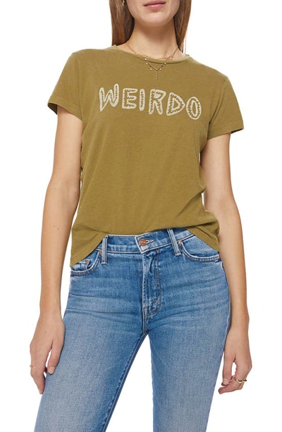 Stranger things. A soft crewneck with a slim fit for a vintage look and feel. Made from a blend of recycled cotton, the army-green tee features a white text graphic on the front. Made in Los Angeles. Style No. 8231-1079-WRD MOTHER The Boxy Goodie Goodie Weirdo T-Shirt