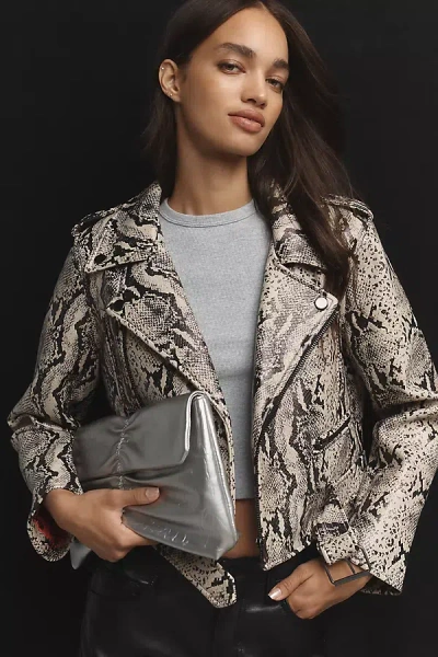 Designed in snake-printed faux leather, MOTHER's The Chopper Jacket is a classic moto style with a notched collar, zip pockets, belted waistband, and a slightly cropped fit. The Chopper Faux-Leather Moto Jacket by MOTHER in Black, Women's, Size: XL, Polyester/Leather/Polyurethane at Anthropologie