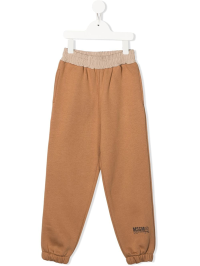 MSGM Kids' Elasticated Track Pants In Brown