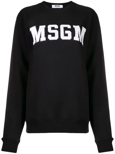 black cotton logo print crew neck long sleeves ribbed hem ribbed cuffs