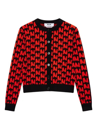 MSGM Monogram-pattern Button-up Cardigan In Red