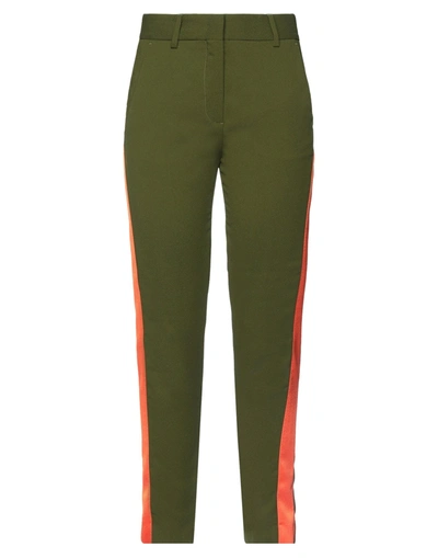 satin, crepe, solid color, no appliqués, mid rise, regular fit, straight leg, hook-and-bar, zip, multipockets , Color: Military green , Size: 4