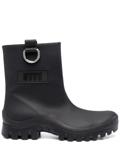 MSGM Round-toe Ankle Leather Boot In Black